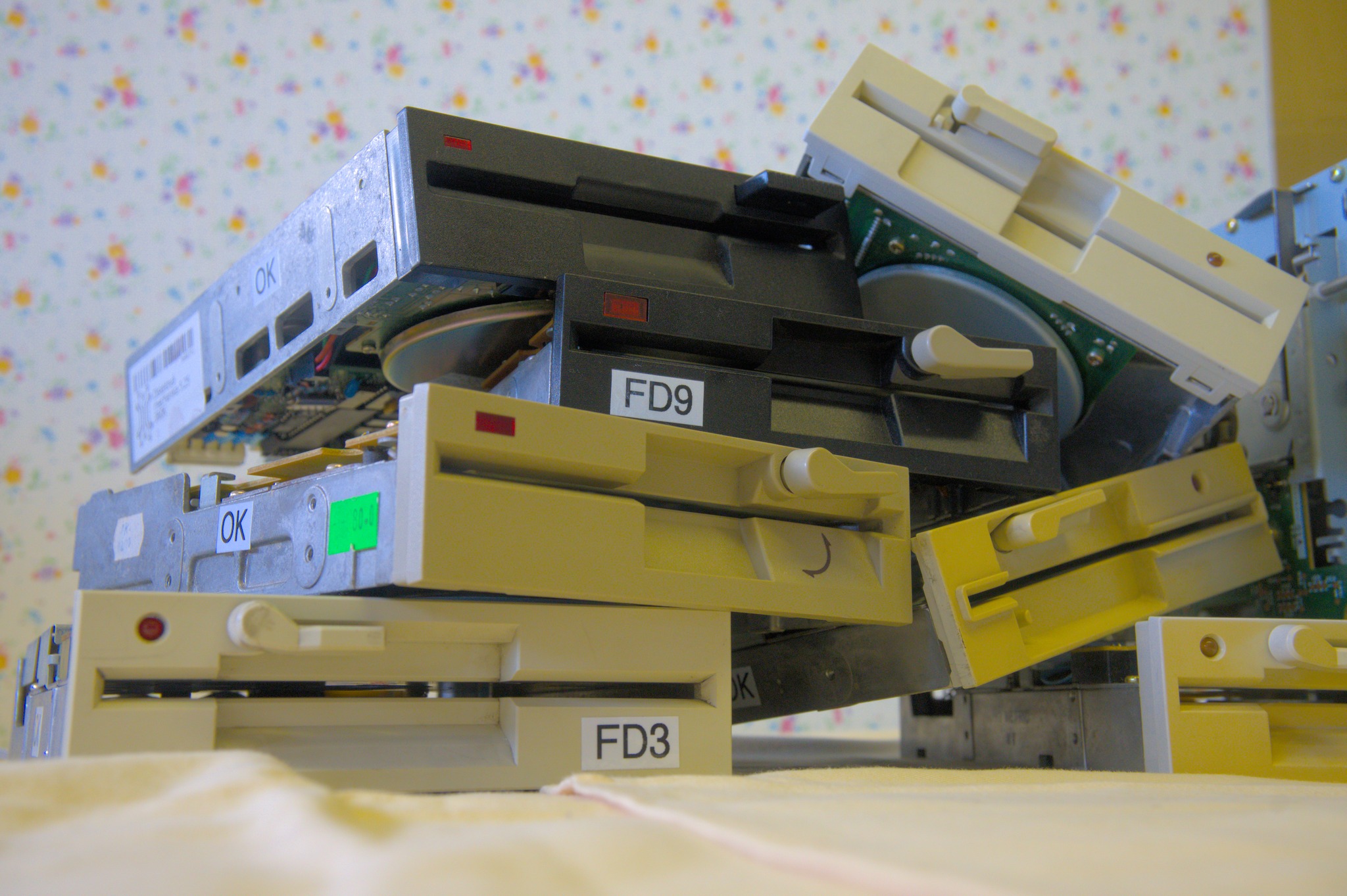 Pro zálohování disket se starými hrami nebo nezazálohovanými daty je v první řadě potřeba mít disketovku. Ačkoliv 5,25" disketovky nejsou zdaleka tak nedostatkové zboží jako ty 8", tak už shání daleko hůře než pár let nazpět. Proto Lukáš Nevařil udělal velkou revizi všech našich disketovek. Kromě toho také jednu disketovku upravil tak, aby mohla číst flipppy-diskety, které se používaly třeba na Commodoru 64 (disketovka s páčkou) nebo starou disketovku z Robotronu.